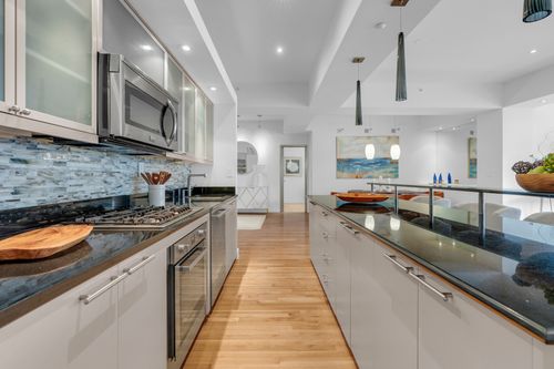 Sophisticated open design filled with light creates inviting living space perfect for entertaining located at landmark Wilkes Passage in the heart of the South End! This elegant three bedroom/two bath residence features high ceilings, hardwood floors, custom built-ins and window seating with storage. The beautiful black granite kitchen with breakfast bar offers stainless steel appliances and plenty of cabinet and counter space. Two spacious bedrooms including sumptuous primary with en suite bath, plus third bedroom or office, all with fully built-out custom closets. Enjoy a common courtyard, huge roof deck with spectacular views and garage parking space. This contemporary home celebrates the finest urban living experience in a concierge/elevator building steps to everything the city has to offer!